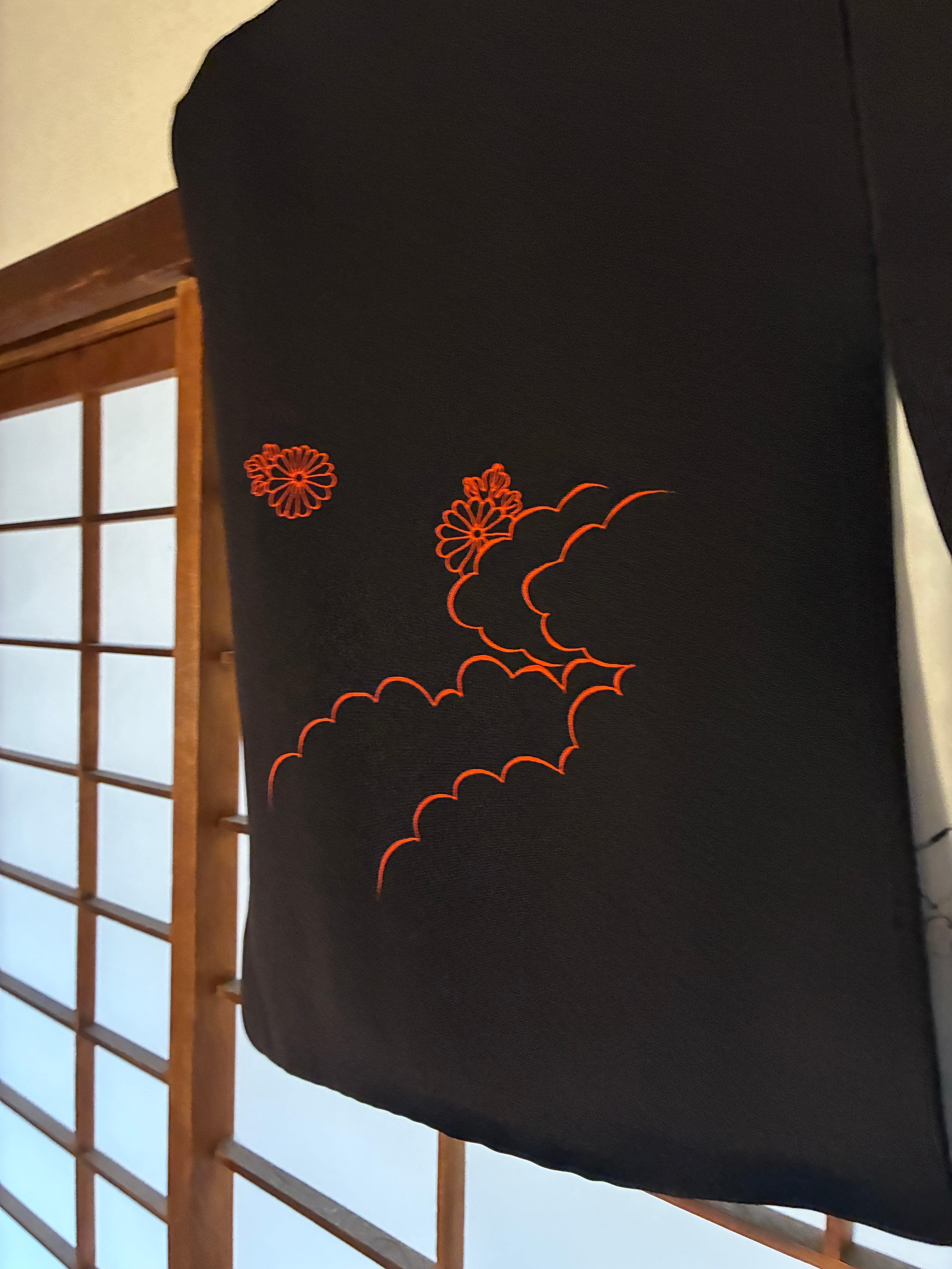 WOMEN'S BLACK HAORI PATTERN JAPANESE RED MIKOSHI STYLE (Silk 100%)GRADE S