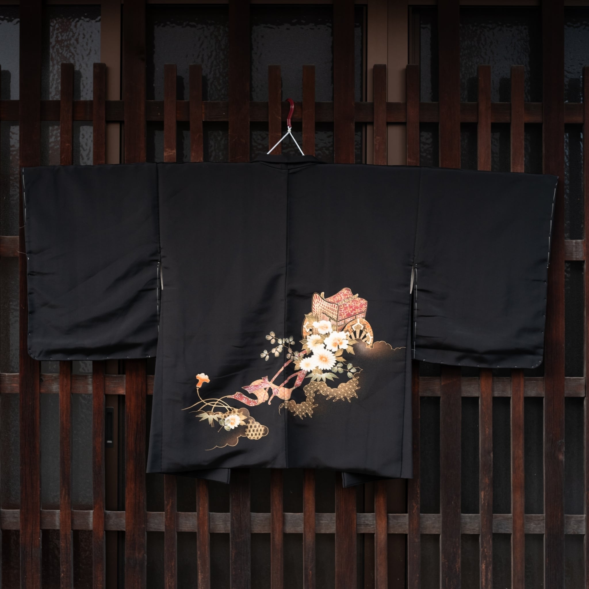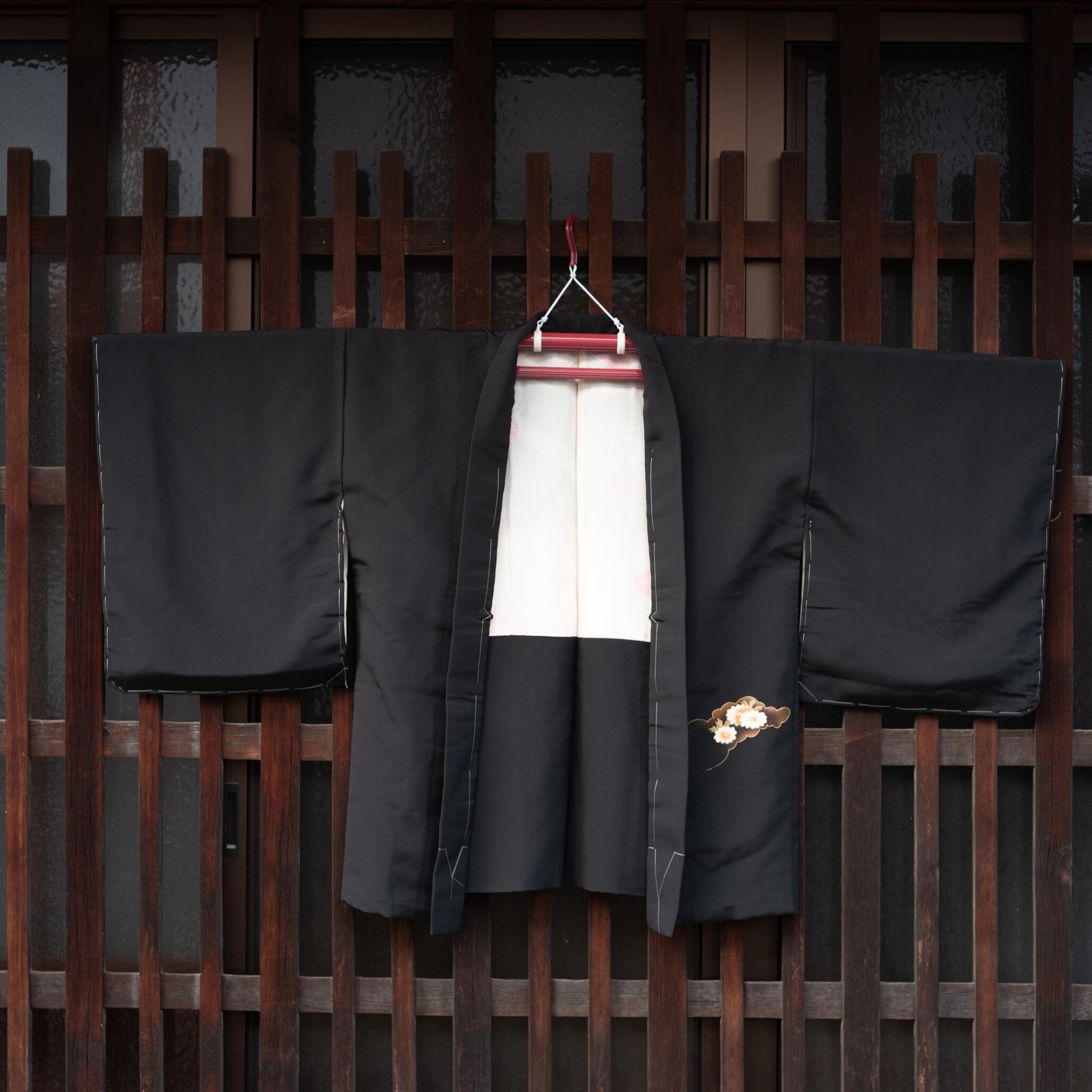BLACK HAORI WITH FLOWERⅢ PATTERN: (GRADE S)